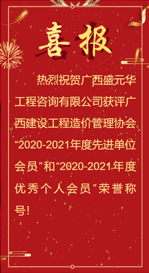 | 【喜訊】熱烈祝賀廣西盛元華獲評(píng)廣西建設(shè)工程造價(jià)管理協(xié)會(huì)“2020-2021年度先進(jìn)單位會(huì)員、優(yōu)秀個(gè)人會(huì)員”兩項(xiàng)榮譽(yù)稱號(hào) |