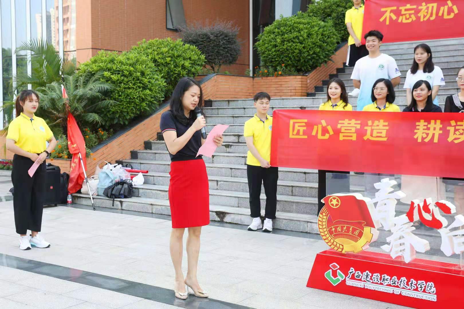 出征儀式合影 廣西建設(shè)工程造價管理協(xié)會黨支部書記王燕蓉在出征儀式上講話。她說,新時代青年既是實現(xiàn)第一個百年奮斗目標的經(jīng)歷者、見證者,更是實現(xiàn)第二個百年奮斗目標,建設(shè)社會主義現(xiàn)代化國家的生力軍。對此,她希望同學(xué)們能夠通過此次“科技、文化、衛(wèi)生”三下鄉(xiāng)活動,深入了解我國鄉(xiāng)村振興戰(zhàn)略,并通過實踐把服務(wù)的熱情和學(xué)到的知識運用到新農(nóng)村的建設(shè)中。