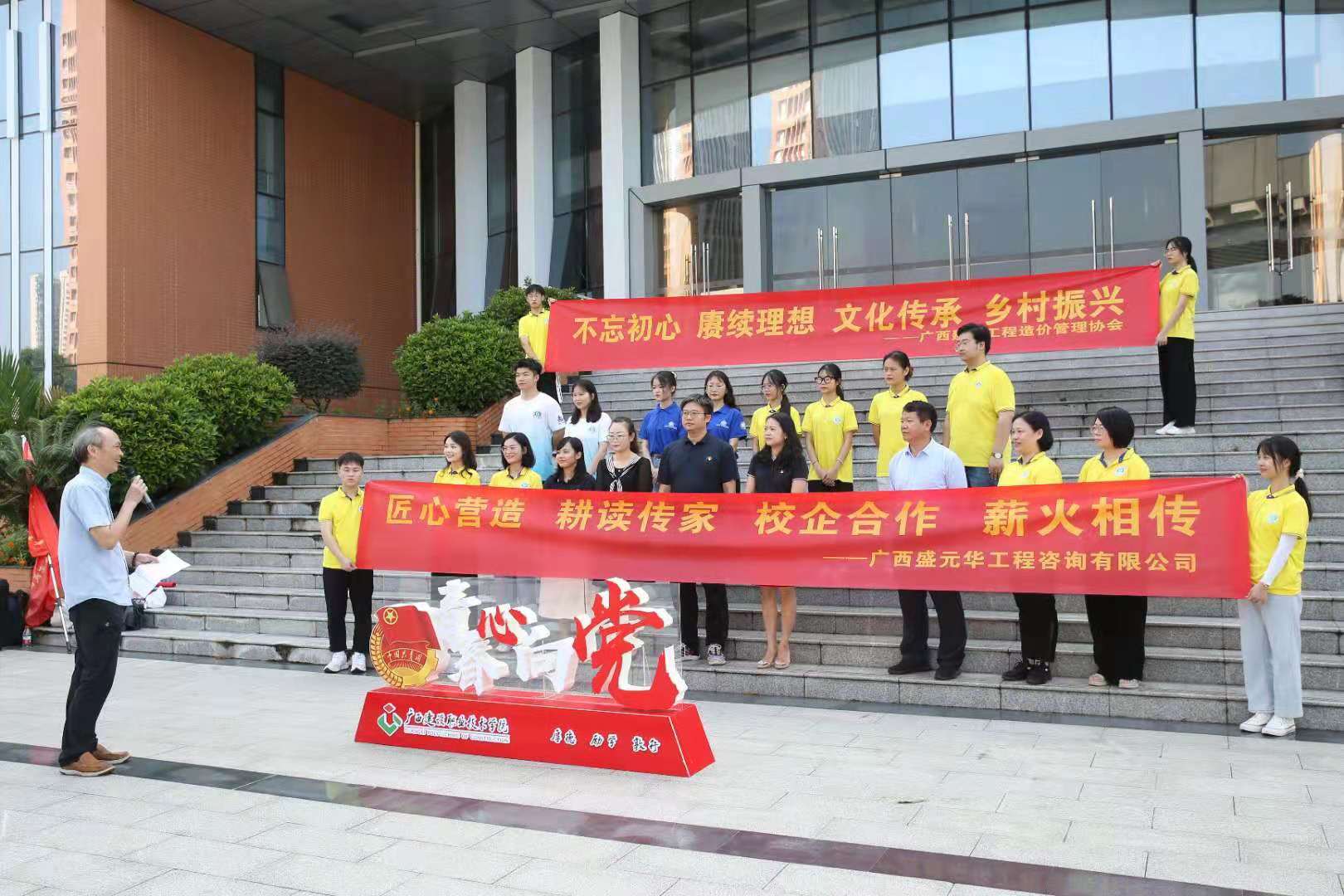 黃藝副總經(jīng)理在出征儀式上講話 據(jù)悉,我公司去年與廣西建設(shè)職業(yè)技術(shù)學(xué)院校企合作的“三下鄉(xiāng)”社會實踐活動收到了良好的社會效果。再次出征啟程,依托學(xué)校“三全育人”示范系平臺,“雙高”院校建設(shè)工程管理專業(yè)群建設(shè),融合互聯(lián)網(wǎng)+項目打造,由廣西建設(shè)職業(yè)技術(shù)學(xué)院管理工程系、馬克思主義學(xué)院聯(lián)手組織,得到我公司與廣西建設(shè)工程造價管理協(xié)會全程指導(dǎo),既加強了校企合作聯(lián)系,又體現(xiàn)了行業(yè)企業(yè)的社會擔(dān)當,更借助實踐檢驗育人實效,實現(xiàn)了學(xué)校、行業(yè)、企業(yè)“三線交融”,匯聚校行企力量,助力鄉(xiāng)村振興。
