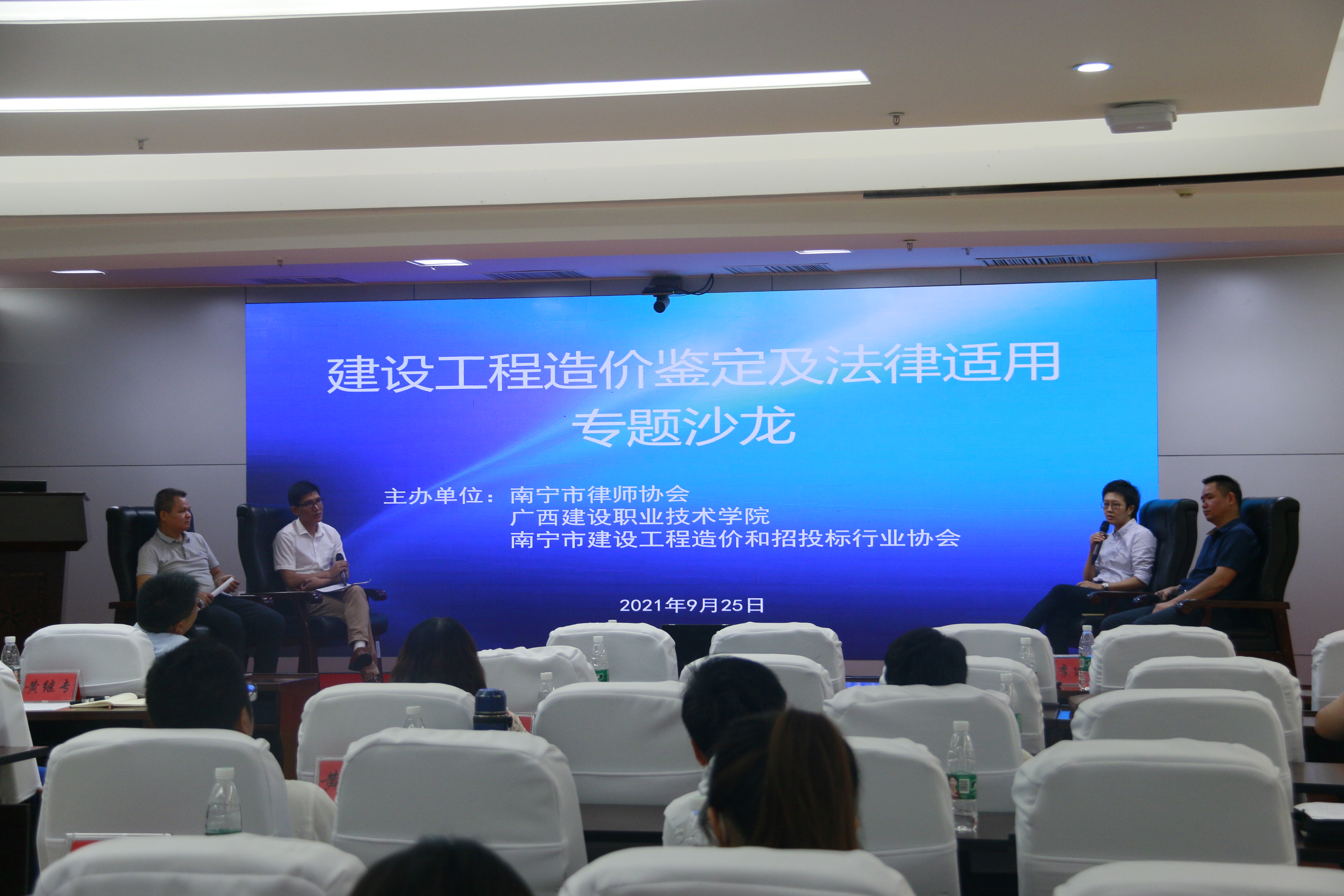 9月25日上午,南寧市律師協(xié)會與廣西建設職業(yè)技術學院、南寧市建設工程造價和招投標行業(yè)協(xié)會共同開展的“建設工程造價鑒定及法律適用”專題沙龍活動在南寧市司法局成功召開。